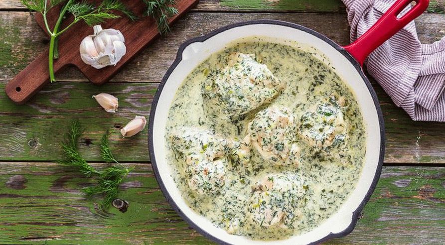 - Luego mezcle suavemente, agregue eneldo, crema agria y cocine otros 10 minutos