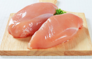 Filete de pollo cortado en porciones. Batir la carne no es Necesito Resultará tierno y jugoso.