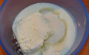 - Combine yogur y requesón. Batir con un chapuzón licuadora