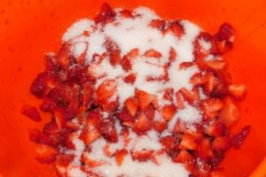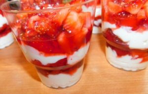 - En tazones o vasos de crema, extienda la crema y las fresas en capas.