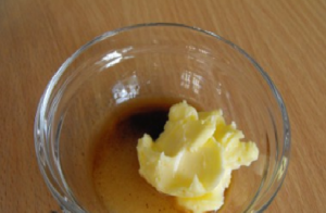 - Mezcle la mantequilla ablandada en un vial, azúcar, ron y canela.