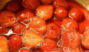- Dobla las fresas en una cacerola, agrégale azúcar y agua. Guisar hasta que nuestra fresa esté suave. Genial