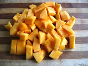 - Ponga la calabaza en una sartén, vierta agua, agregue laurel hojear y poner a cocinar por 10 minutos.