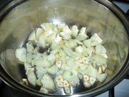 - Derrita la mantequilla en una sartén y fría las cebollas y el ajo.