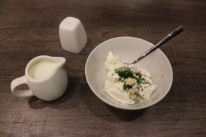 Queso crema casero con hierbas y ajo condiciones, se pueden servir con galletas, pan, platos de pollo, carne Con tal queso puedes hacer varios bocadillos, ensaladas. También Puedes llevarlo contigo en un picnic. Preparar queso crema casero muy simple, incluso una joven anfitriona puede manejarlo.