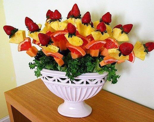 Qué hermoso y delicioso hacer rodajas de frutas para la fiesta la mesa? Presta atención a esta receta, tal presentación causará genuino deleite entre sus invitados. Puedes usar para enviar cualquier jarrón y brochetas. Prepara un plato para tus seres queridos en casa mujeres antes del 8 de marzo, o cualquier otro día.