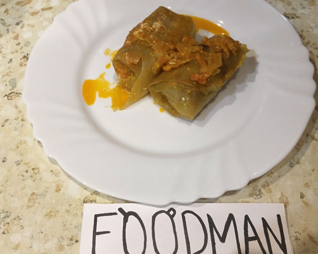 - Toma una hoja y pon el relleno sobre ella, luego envuélvelo.