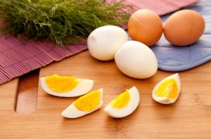Mis huevos con una esponja, hervir durante 9-10 minutos, enfriar, limpiar y Cortamos cada huevo preparado en 4 partes, obtenemos 20 rodajas.