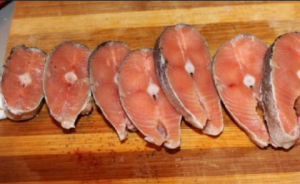 - Cortar el pescado lavado, frotarlo con sal y pimienta.