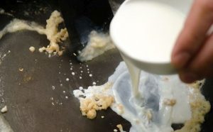 - Vierta la harina en la sartén, fría hasta que estén doradas.