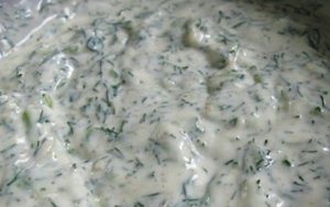 Deliciosa salsa de yogurt para pollo y carne, cocinada en condiciones del hogar, también llamadas tzatziki. Es tradicional griega salsa generalmente servida con pollo. Pero puedes hacerlo no solo a los platos de pollo, pero también a la barbacoa, a los platos de carne, y también a comer con pan, pan o pescado. La salsa es muy tierna consistencia