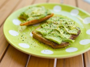 - Poner la salsa en dos tostadas, poner hojas de lechuga, rebanadas Aguacate, espolvoree con el parmesano restante.