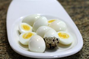 Cocine los huevos de codorniz durante 5 minutos, pélelos y córtelos en dos. mitades Hervir las remolachas hasta que estén cocidas, enfriar y pelar.
