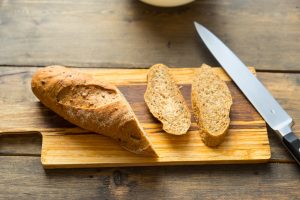 - Cortar la baguette en rodajas y dorarla en una sartén.