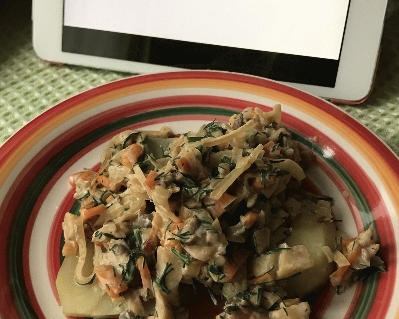 - Agregue la crema agria y el eneldo. Guisar unos 2-3 minutos. Bien Servir con papas hervidas o pan integral.