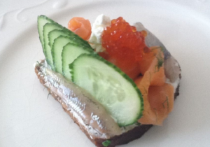 Delicioso aperitivo, inventado por los daneses. Está hecho de tres tipos de peces. La cocina casera solo requiere unos pocos minutos