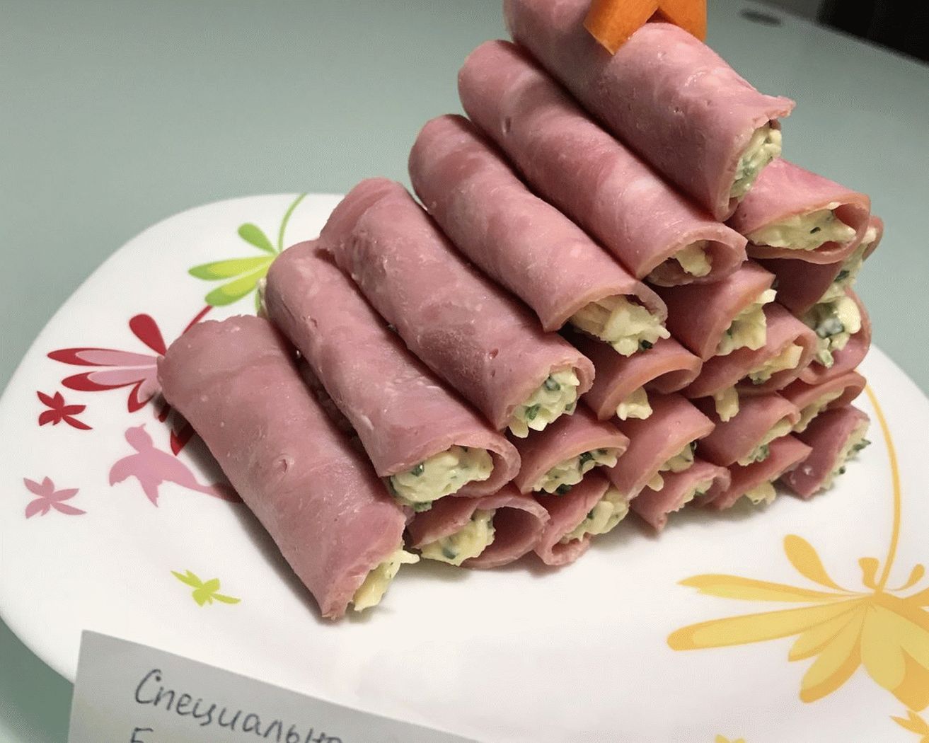 - Solo queda envolver la masa en jamón. Aquí el truco de la vida: tú nunca corte jamón tan delgado en casa para que los rollos sean perfectos acurrucado, especialmente si toma el mismo pequeño en El diámetro del jamón como el mío (con él se obtienen rollos para 2 picaduras). Siempre pido en la tienda que corte lo más fino e intensamente posible Yo sigo esto Gira los rollos.