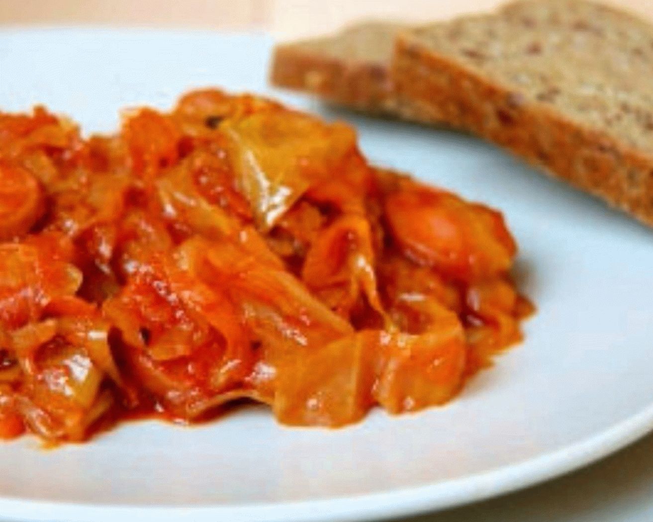- 5 minutos antes de que el repollo esté listo, agréguele salchichas y mezclar