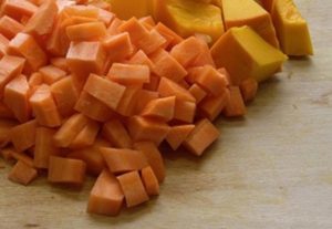 - Las piezas cortan zanahorias y calabazas, peladas y semillas de girasol.