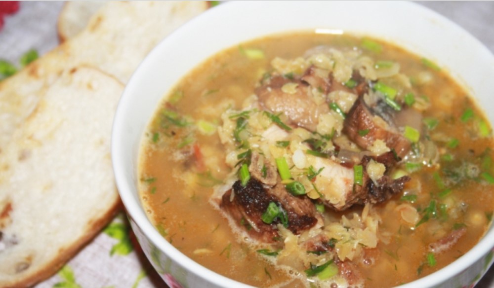 Por lo general, carne frita, verduras, champiñones después de la barbacoa siempre se queda. Realmente no quiero una barbacoa fría, pero cocinar en casa con él y con verduras la sopa estará bien, especial sabor y aroma garantizados.