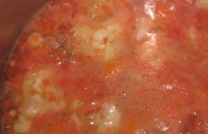 - Corte las zanahorias con cebolla, cocine durante diez minutos en agua hirviendo con con sal Agregue inflorescencias de repollo al caldo.