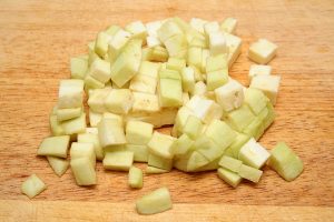 - Caliente el aceite vegetal en una sartén. Poner cebolla cebolla y freír hasta que estén doradas. Añadir chorizo picado. Revuelve y fríe. Retirar del fuego.