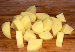 - Pelar y cortar las papas en trozos arbitrarios.