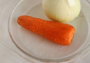 - Freír en 2 cucharadas de aceite vegetal hasta un ligero sonrojo. primero zanahorias, y luego poner cebolla y freír hasta cebolla transparencia.