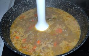 - Luego mezcle con una licuadora sumergible hasta que quede suave.