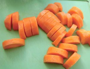 - Cortar en trozos gruesos las zanahorias.