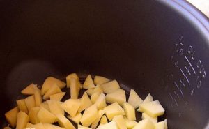 - Ponga las papas en el tazón de la multicocina, vierta agua fría.