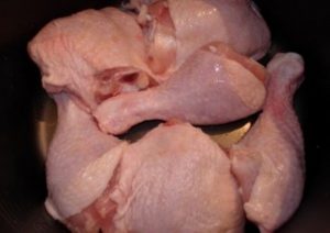 - Enjuaga el pollo con agua, córtalo en porciones. Verter 3 litros de agua y prenderse fuego. Cuando hierva, retire la espuma. cuchara ranurada Cocine a fuego lento sin cubrir. el caldo se mantuvo brillante. Cocine por 2 horas.