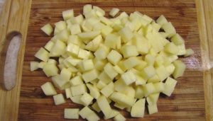 - Pelar las papas y cortarlas en cubos medianos.