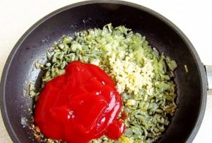 - Luego agregue salsa de tomate y cocine en una pequeña fuego 10 min.
