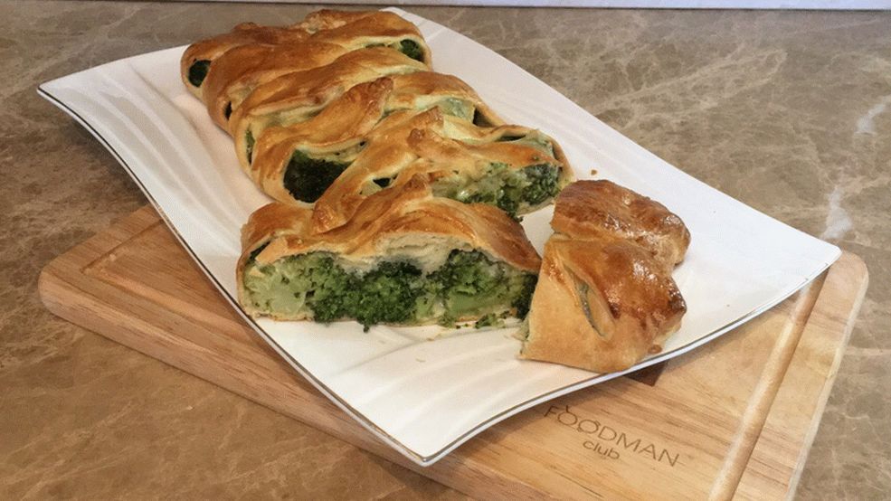 - Enrolle bien la masa, ponga el brócoli en el medio, sal, poner queso encima.