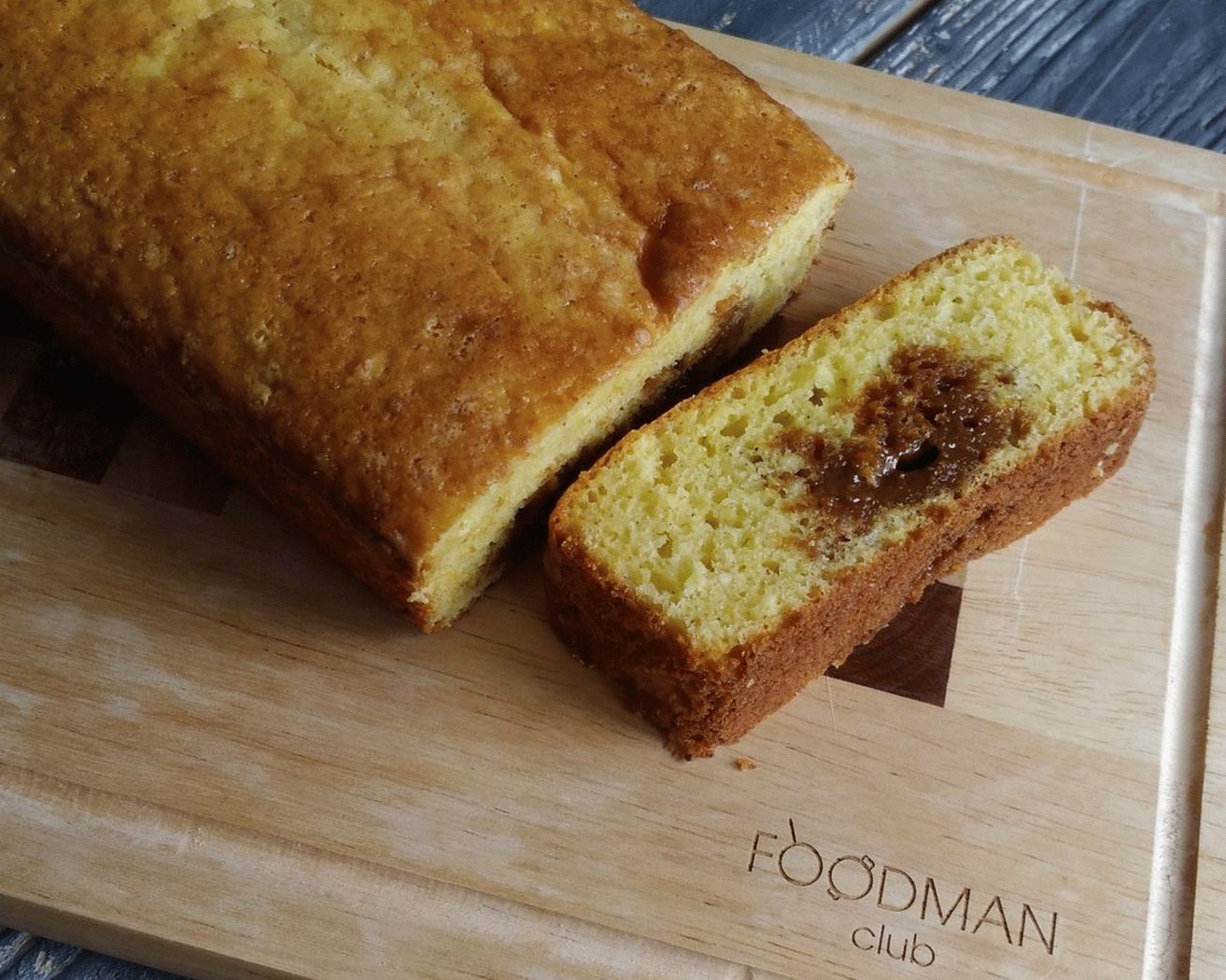 - Pon la mitad de la masa en forma, extiende la hervida en el medio leche condensada y poner la masa restante encima.