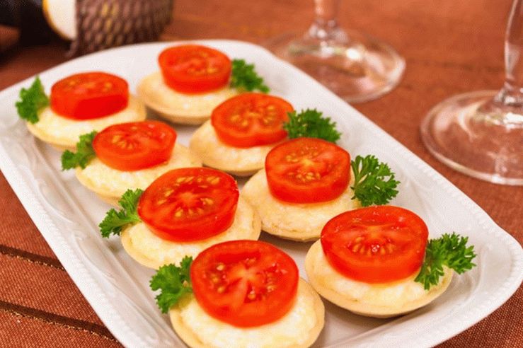 Efectiva porción de deliciosa ensalada de queso para un aperitivo. Requiere ingredientes mínimos y tiempo de cocción en casa, sirva en las tartaletas más pequeñas.