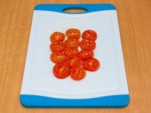 - Coloque suavemente los círculos de cereza en la parte superior.