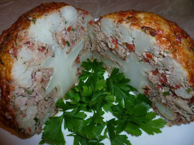 Haga una coliflor al horno con carne picada entera – esto Plato casero sabroso e inusual. Mínimos problemas de cocción y el máximo de vistas sorprendidas de los invitados.