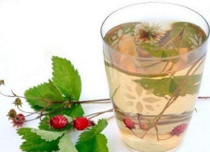 - Cortamos flores y hojas de trébol, arrancamos hojas de menta. Lo ponemos en la tetera. Dejamos las ramas de fresas intactas, agregamos a menta y trébol. Agregue agua hirviendo a la tetera.