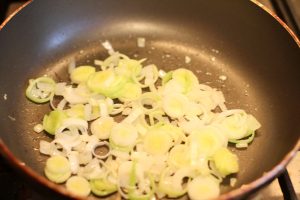 - Pica finamente la cebolla, corta el puerro en aros. Estofado de verduras con un poco de aceite