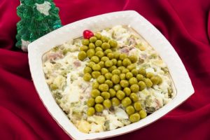 Esta ensalada es “nativa de la infancia” en la mesa festiva siempre Se verá apropiado. Para prepararlo necesitarás: papas, zanahorias, jamón, huevos, pepinos en vinagre, champiñones en escabeche (o cualquier otro champiñón), cebolla, mayonesa, verdes