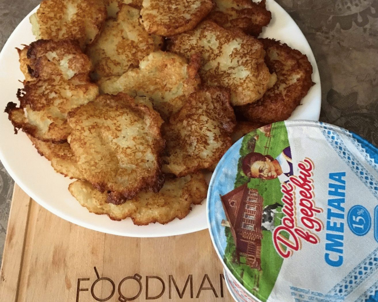 �Sabías que los panqueques de papa realmente sabrosos se hacen sin harina y sin huevos? El secreto es que necesitas papas Elija alto en almidón. Puedes comprobarlo muy simple: corta la papa por la mitad y agárrala por la parte superior mitad – si el fondo no se cae, entonces has elegido la papa perfecta para tortitas de papa. Sirva panqueques caseros preparados con crema agria